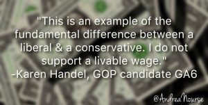 “This is an example of the fundamental difference between a liberal and a conservative. I do not support a livable wage.” -Karen Handel, GOP Candidate GA6